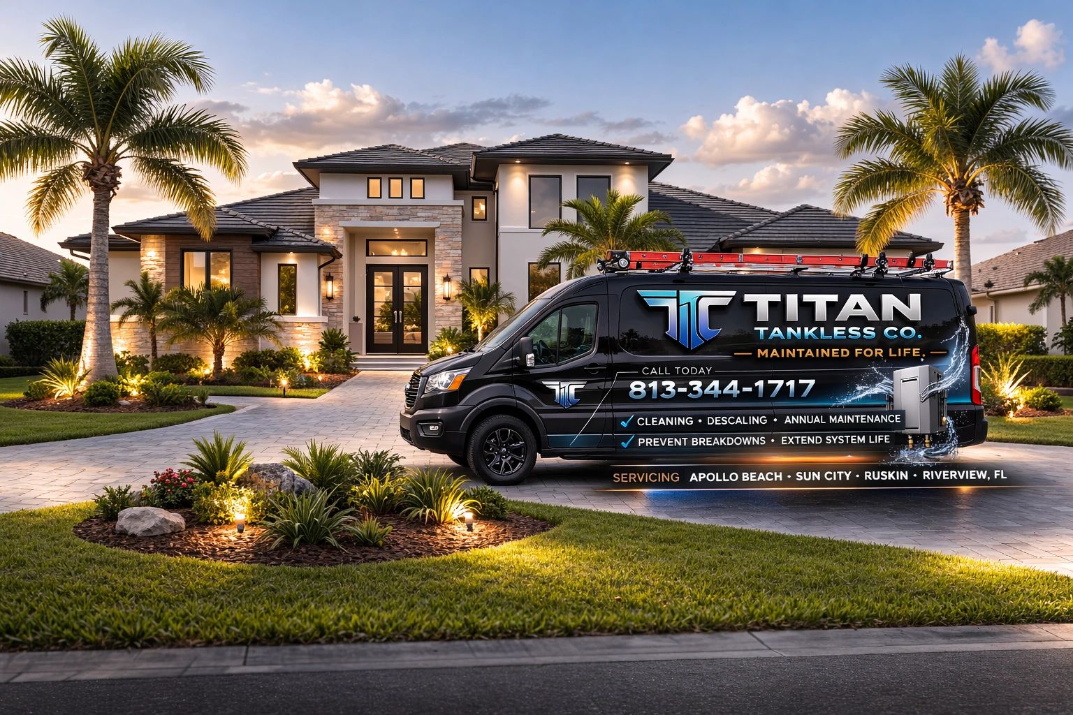 Titan Tankless Co. specializes exclusively in professional tankless water heater descaling and flushing for homeowners throughout Apollo Beach, Sun City Center, Ruskin, Riverview, and Parrish, Florida.